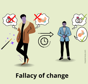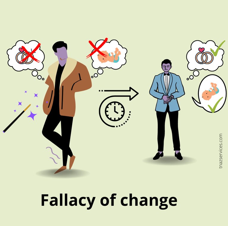 The Fallacy of Change is a cognitive distortion where individuals believe that they can change other people's behaviors, attitudes, or emotions. This thinking can lead to frustration, disappointment, and resentment when others don't change as expected.