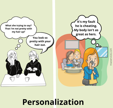 - Relationships: If your partner is in a bad mood, and you assume it's because you did something wrong or that they're upset with you, even if they haven't said anything to suggest it, you are personalizing their emotions.