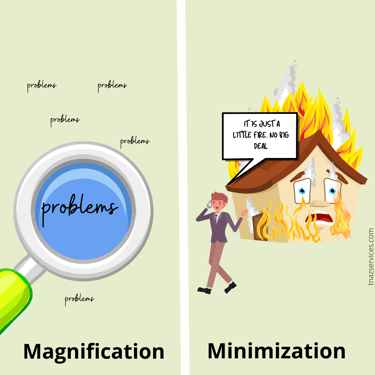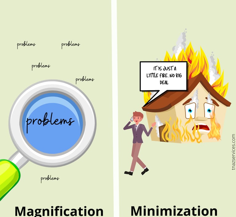 Magnification involves blowing situations out of proportion, making them seem much more significant, dire, or threatening than they really are. This distortion can lead to excessive worry, anxiety, and stress. People who engage in catastrophizing often imagine the worst-case scenarios and dwell on potential negative outcomes.