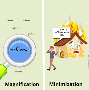 Minimization is the opposite of magnification. It involves downplaying the significance of a situation, often inappropriately. This distortion might lead someone to dismiss their accomplishments, ignore their positive qualities, or overlook potential consequences. Minimization can prevent individuals from recognizing their achievements or addressing important issues.