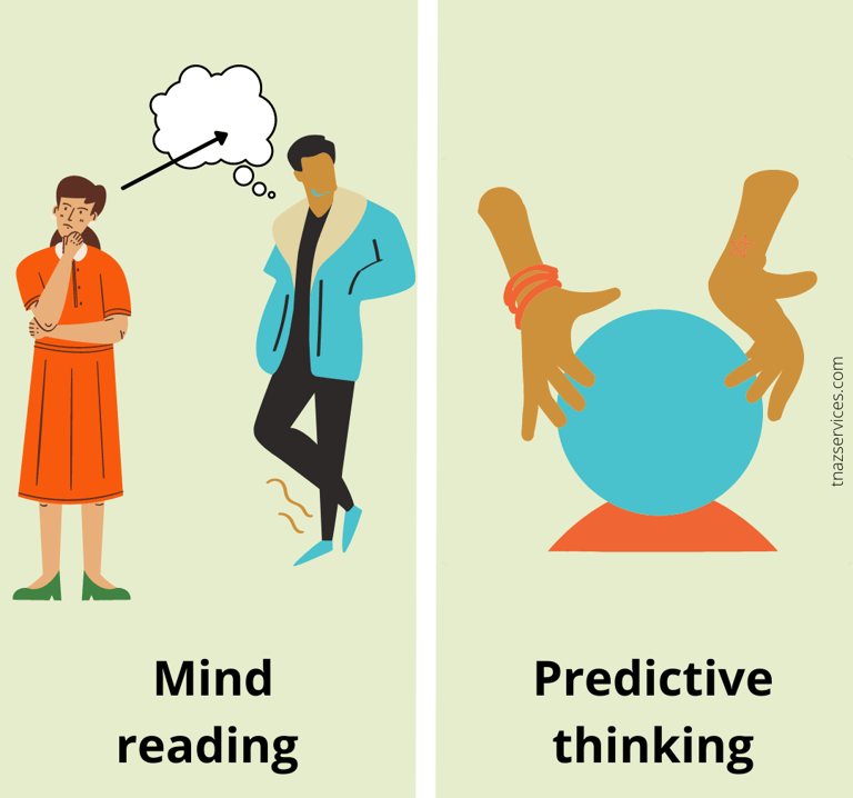 Mind reading is assuming we know what others are thinking without any concrete evidence to support your assumption. For instance, if someone assumes that a friend is angry with them without any clear indication of this emotion, they are engaging in mind reading.